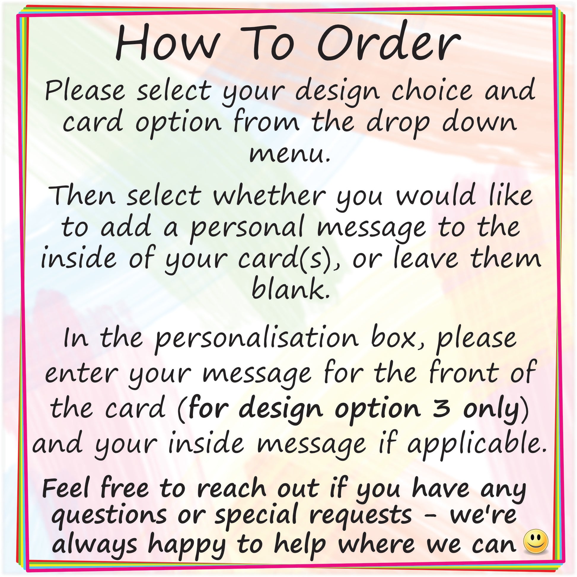 🎈All our cards are created and printed to order at our studio in Cambridgeshire. If ordering a multipack of cards, the same design (and inside message if applicable) will be used on each card.